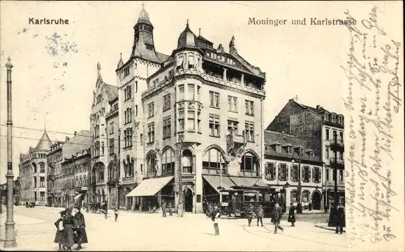 Ak Karlsruhe in Baden, Moninger Straße, Karlstraße