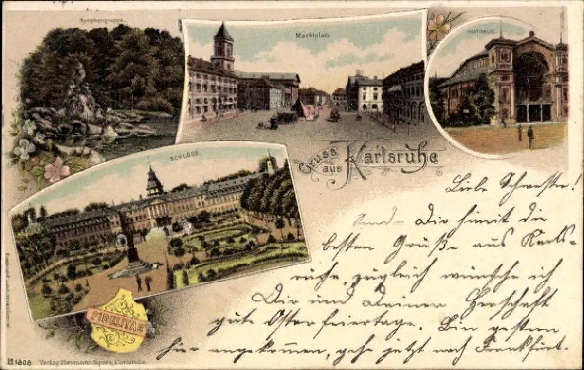 Ak Karlsruhe in Baden, Nymphengrappe, Marktplatz, Schloss, FIDELITAS