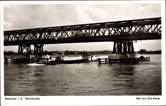 Ak Karlsruhe in Baden, Partie an der Rheinbrücke