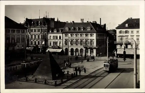 Ak Karlsruhe in Baden, Pyramide, Straßenbahnen, Gebäude