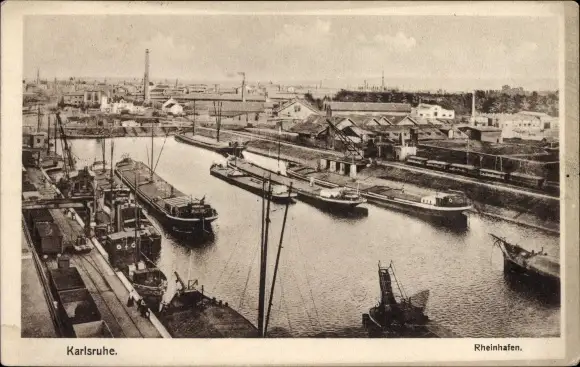 Ak Karlsruhe in Baden, Rheinhafen, Schiffe