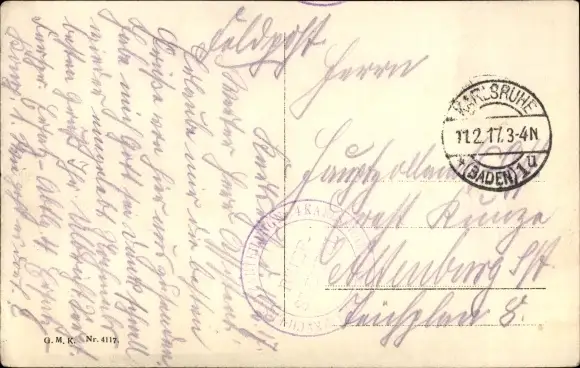 Zustand, siehe Scan, gelaufen, 1917 - ca 14 cm X 9 cm
