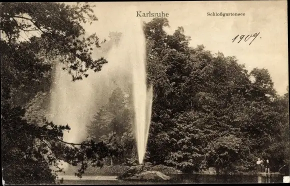 Ak Karlsruhe in Baden, Schlossgartensee, Wasserfontäne