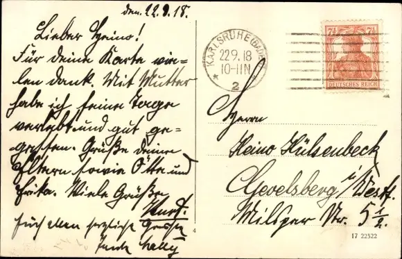 Zustand, siehe Scan, gelaufen, 1918 - ca 14 cm X 9 cm