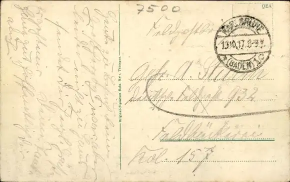Zustand, siehe Scan, gelaufen, 1917 - ca 14 cm X 9 cm