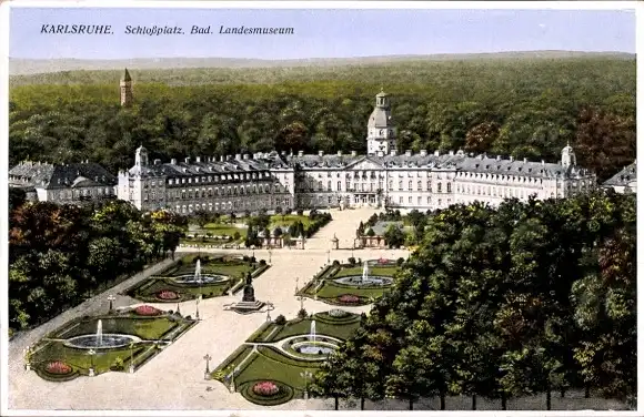 Ak Karlsruhe in Baden, Schlossplatz, Bad. Landesmuseum