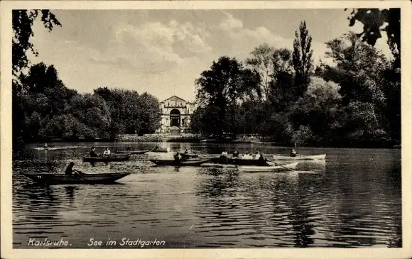Ak Karlsruhe in Baden, See im Stadtgarten, Ruderboote
