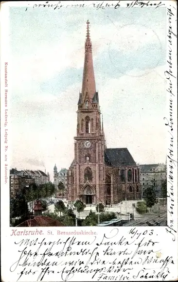Ak Karlsruhe in Baden, St. Bernarduskirche