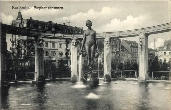 Ak Karlsruhe in Baden, Stephansbrunnen