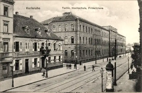 Ak Karlsruhe in Baden, Techn. Hochschule, Fridericiana, Litfaßsäule