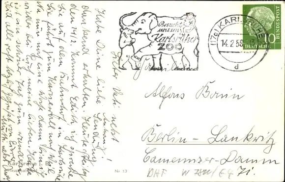 Zustand, siehe Scan, gelaufen, 1958 - ca 14 cm X 9 cm