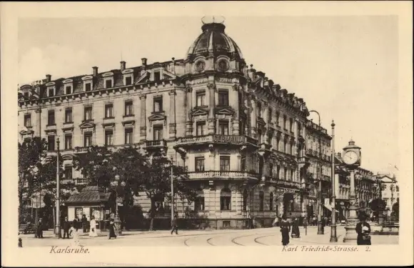 Ak Karlsruhe in Baden Württemberg, Karl Friedrich Straße 2, Germania, Stadtuhr