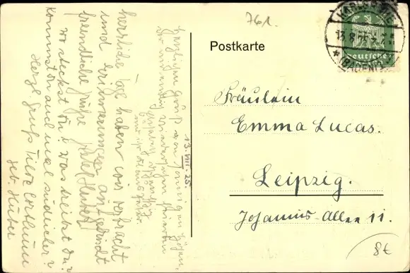 gelaufen 1925, Eckknicke, Knickspur oben, leichte Stempelspur, sonst guter Zustand