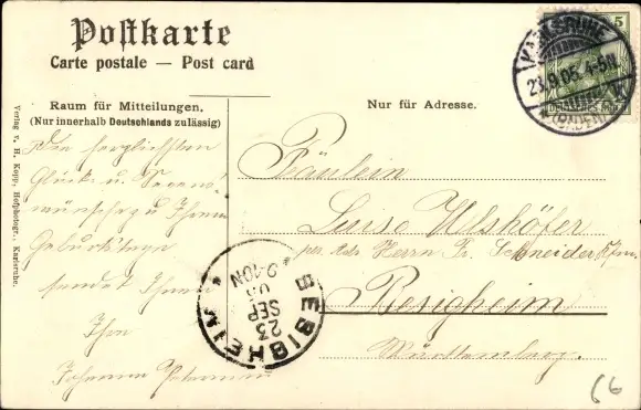 gelaufen 1905, Eckknick rechts oben, Stempelspur, sonst guter Zustand