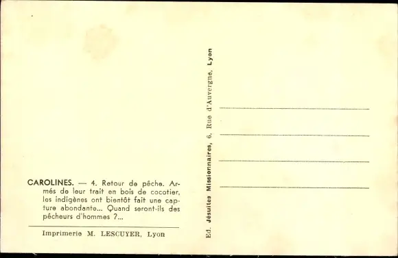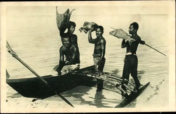 Ak Karolineninseln, Fischer mit Fang, Speer, Boot