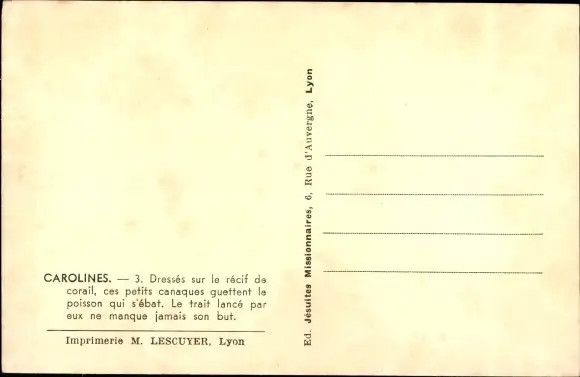 Ak Karolineninseln, Fischer mit Speer, Strand