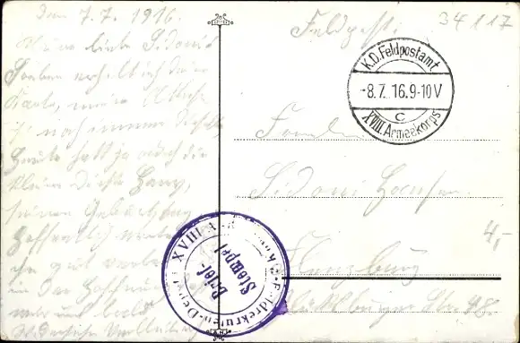 Zustand, siehe Scan, gelaufen, 1916 - ca 14 cm X 9 cm
