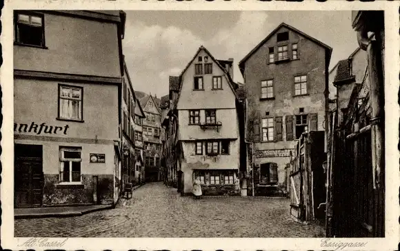 Ak Kassel in Hessen, Alt Cassel, Basiggasse, alte Häuser, gepflasterte Straße