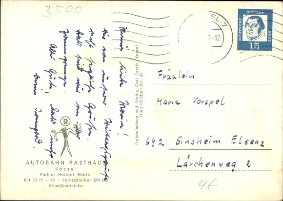 Zustand, siehe Scan, gelaufen- Inh.: Herbert Henkel - ca 15 cm X 11 cm