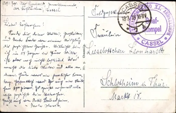 gelaufen 1918, Eckknicke, Stempelspur, sonst guter Zustand