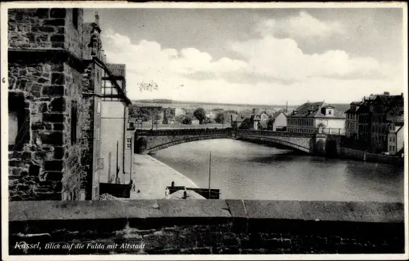 Ak Kassel in Hessen, Blick auf die Fulda mit Altstadt, Brücke