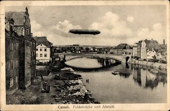 Ak Kassel in Hessen, Fuldabrücke, Altstadt, Zeppelin