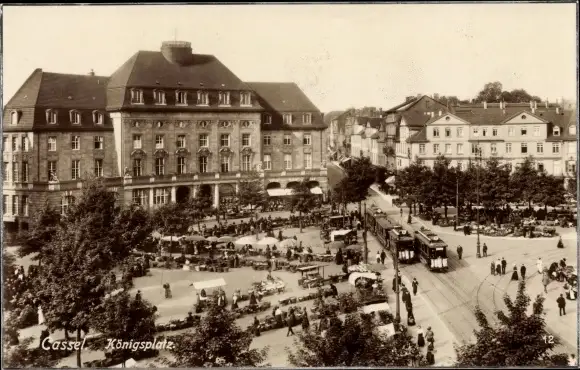 Ak Kassel in Hessen, Königsplatz, Straßenbahn, Marktstände