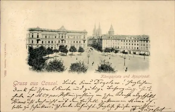 Ak Kassel in Hessen, Königsplatz, Vogelschau, Hauptpost, Kirche, Turm