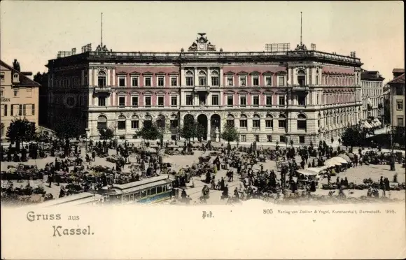 Ak Kassel in Hessen, Partie im Ort, Marktplatz, Straßenbahn