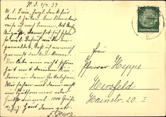 Zustand, siehe Scan, gelaufen, 1937 - ca 15 cm X 10 cm
