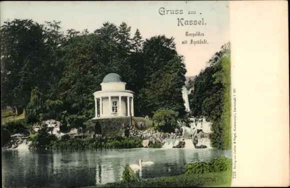 Ak Kassel in Hessen, Tempelchen mit Aquadukt, Schwäne