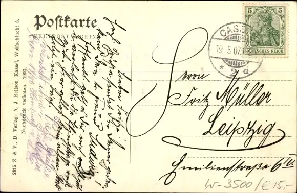 Zustand, siehe Scan, gelaufen, 1907 - ca 14 cm X 9 cm