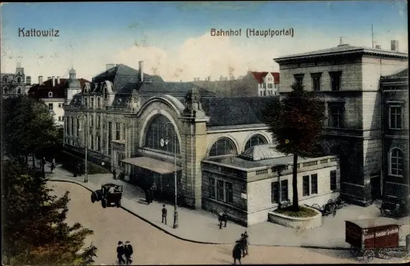 Ak Katowice Kattowitz Oberschlesien, Bahnhof, Hauptportal