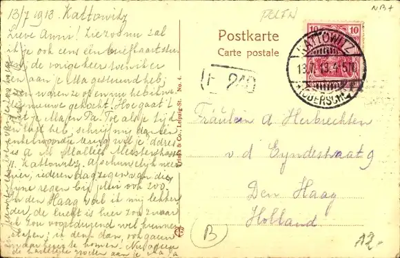 Zustand, siehe Scan, gelaufen, 1913 - ca 14 cm X 9 cm