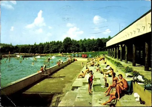 Ansichtskarte, Postkarte, Badeanstalt, Schwimmbad, Freibad, Strandbad, Volksbad
