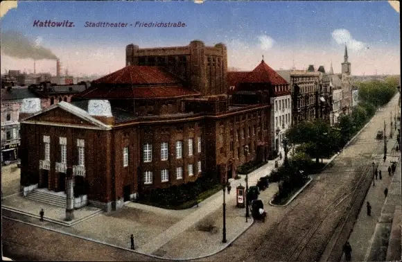 Ak Katowice Kattowitz Oberschlesien, Stadttheater, Friedrichstraße