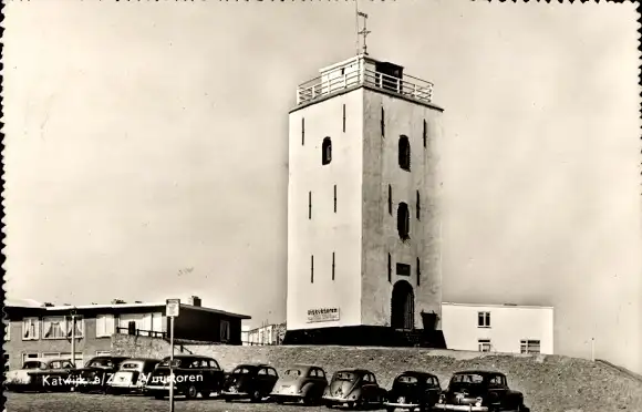 Ak Katwijk aan Zee Südholland Niederlande, Leuchtturm, Autos
