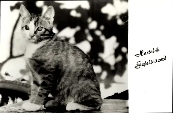 Ak Katze, Kitten, Seitenansicht, Hartelyk Gefeliciteerd
