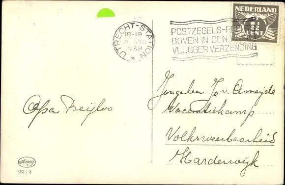 Zustand, siehe Scan, gelaufen, 1938 - ca 14 cm X 9 cm