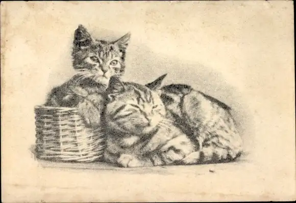 Ansichtskarte, Postkarte, Korbflechter, Korb flechten, Korbhandel, Korbhändler, Korbmacher