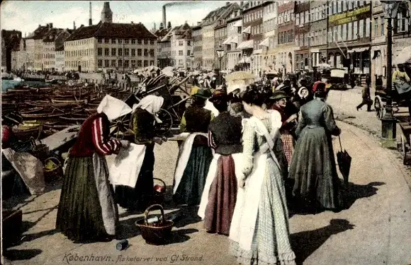 Ak København Kopenhagen Dänemark, Fischer beim Cl Strand, Personen in historischer Kleidung, ...