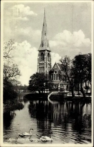 Ak København Kopenhagen Dänemark, Kirche, Schwäne auf dem See