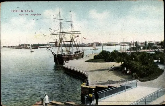 Ak København Kopenhagen Dänemark, Parti fra Langelinie, Hafen, Segelschiff