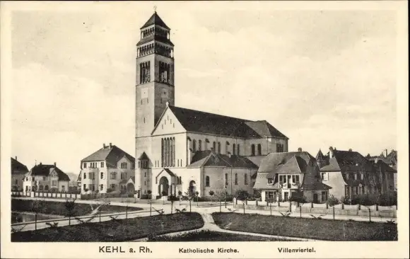 Ak Kehl am Rhein, Katholische Kirche, Villenviertel