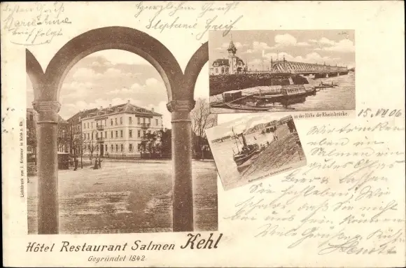 Ak Kehl am Rhein, Rheinbrücke, Hotel Restaurant Salmen