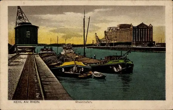 Ak Kehl am Rhein, Rheinhafen, Frachter