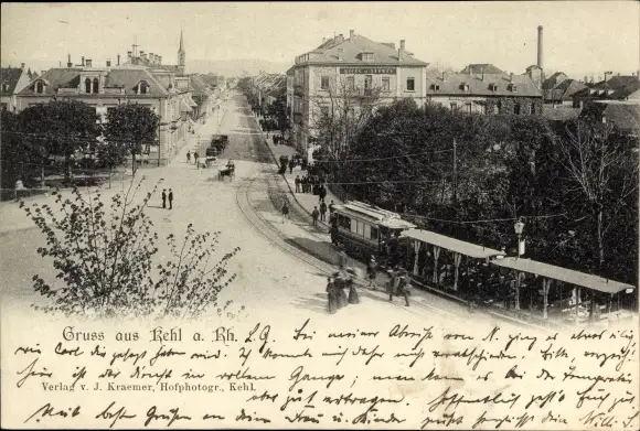 Ak Kehl am Rhein, Straßenpartie, Straßenbahn