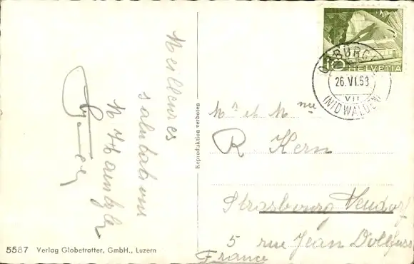 Zustand, siehe Scan, gelaufen, 1958 - ca 14 cm X 9 cm