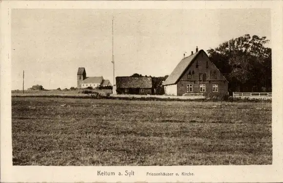 Ak Keitum auf Sylt, Friesenhäuser und Kirche