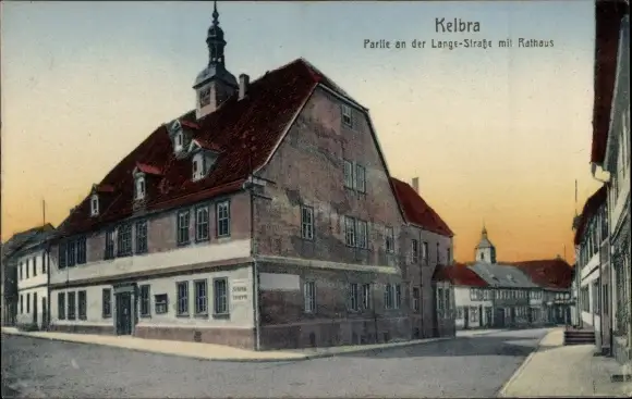 Ak Kelbra am Kyffhäuser, Langestraße mit Rathaus